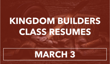 The Kingdom Builders Class will resume on Tuesday, March 3, 2026, at noon. We encourage you to join us. The meeting will take place both in person and…